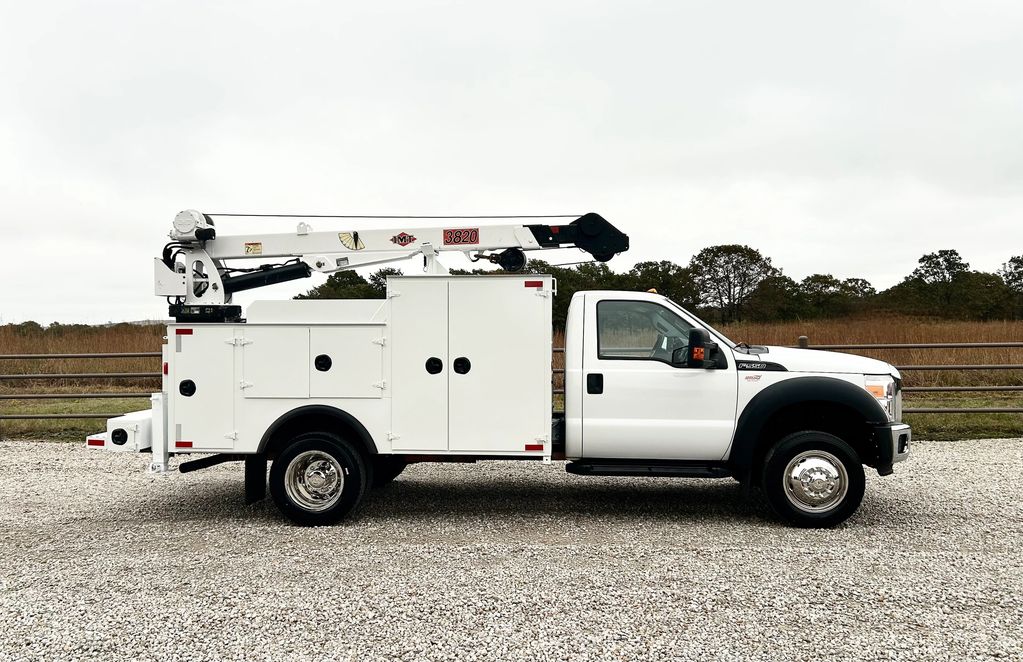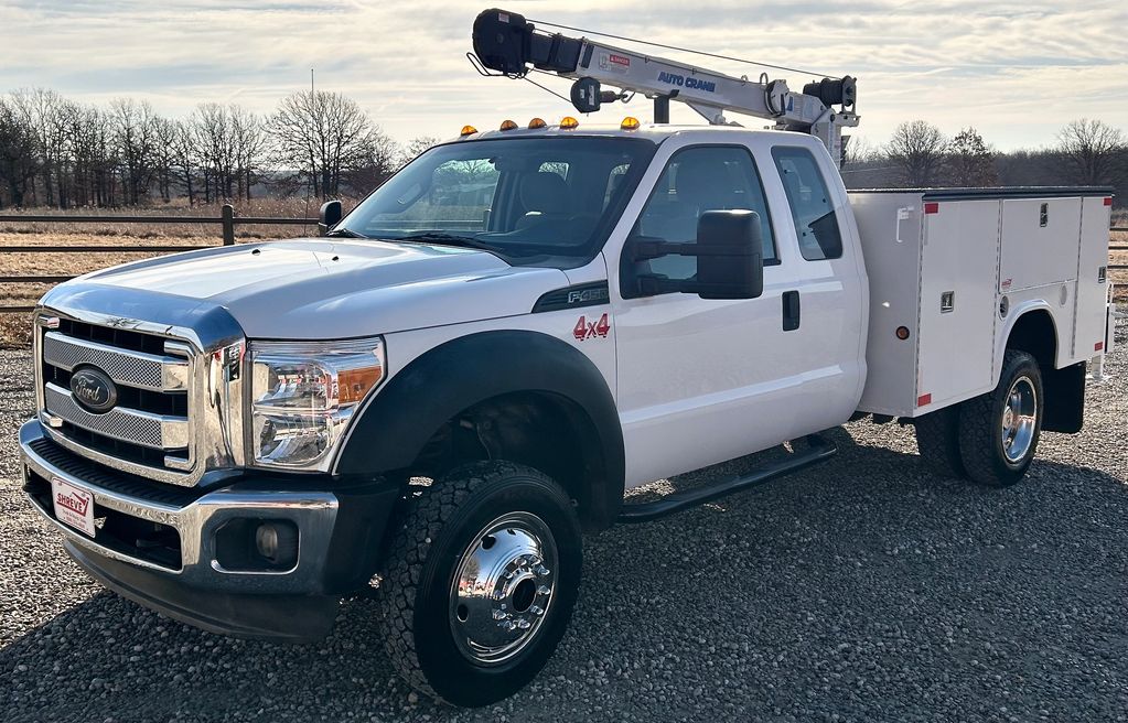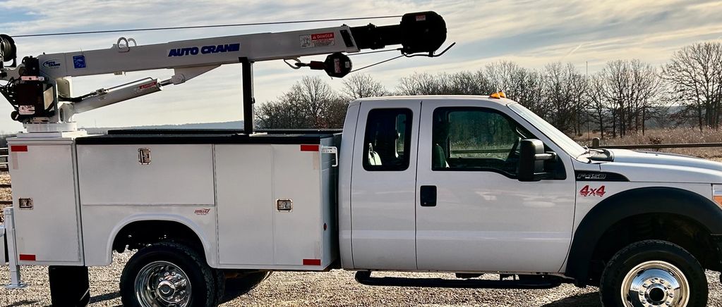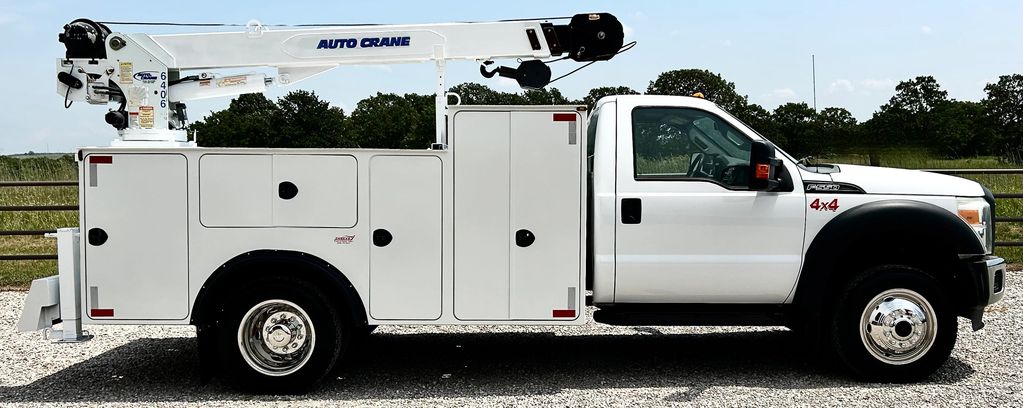 This Truck Has it All. F550, 4X4, Trouble Free V-10 Gas Engine, Power Everything: Windows, Locks, Tilt, Cruise, Chrome Trim, 6 BRAND NEW Tires ! Massive 6,400 lb. Auto crane. All This with Only 15K Actual Miles !